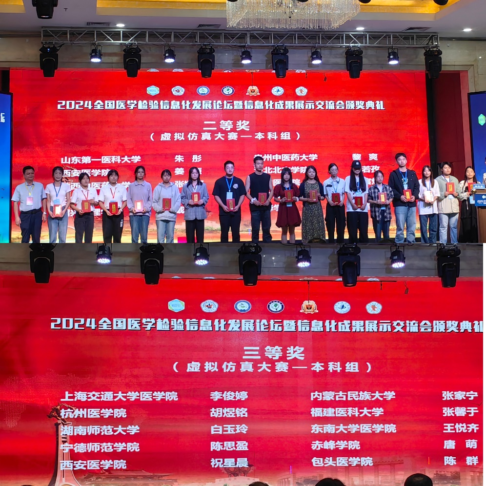 会议期间,同步举办了全国医学检验技术专业大学生形态学大赛、虚拟仿真临床实验诊断大赛和全国医学检验金微课大赛。此次大赛,我专业师生,收获佳绩。在形态学大赛中,我专业学生段晨曦获得学生个人一等奖(指导教师刘蓓),王曼获得学生个人三等奖(指导教师张晴);在虚拟仿真临床实验诊断大赛中,我专业学生姜源获得学生个人二等奖(指导教师梁晓萍),祝星辰获得学生个人三等奖(指导教师邵明明)。邵明明副教授获得金微课现场演讲大赛一等奖,武永红副教授获得金微课现场演讲大赛三等奖。