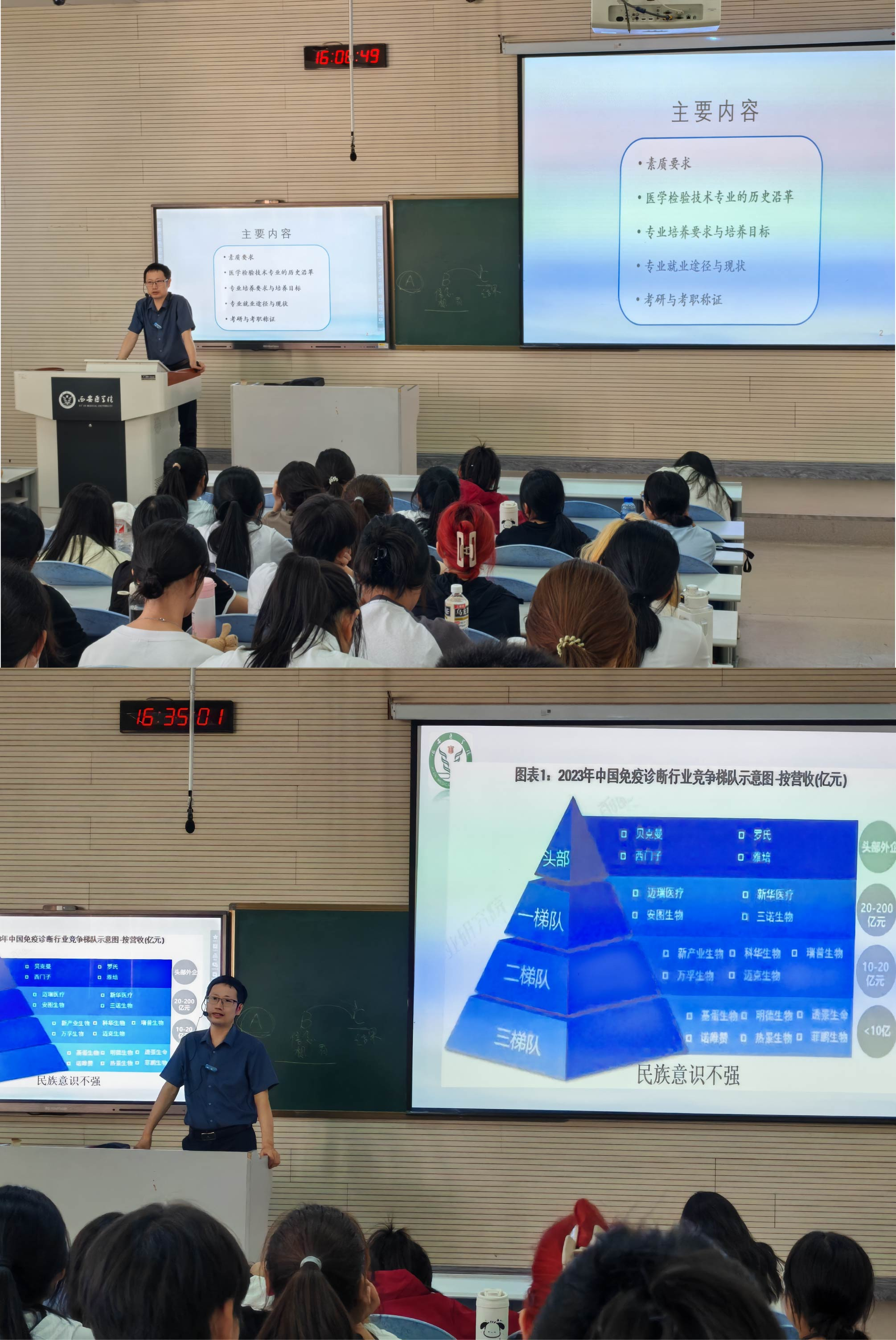 武永红老师还解说了本专业将来可就业的单位和岗位性质,以及研究生可以报考的专业和方向,还对毕业后的职称考试条件做了一定说明。通过讲解,学生们对检验专业有了更新的认识和理解,也对大学四年该如何安排自己的学习生活有了更加清晰的认知。
