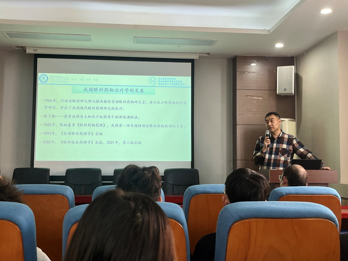 接着,潘士印研究员进行了题为“眼用制剂开发及低浓度阿托品在近视防控中的应用”的精彩讲座。他系统介绍了眼科制剂种类、特点及用途,并概述了近视防控领域的最新研究进展。最后,他重点介绍了低浓度阿托品在近视防控中的显著成效,分享了陕西省眼科研究中心自研低浓度阿托品凝胶的研发历程与卓越疗效。