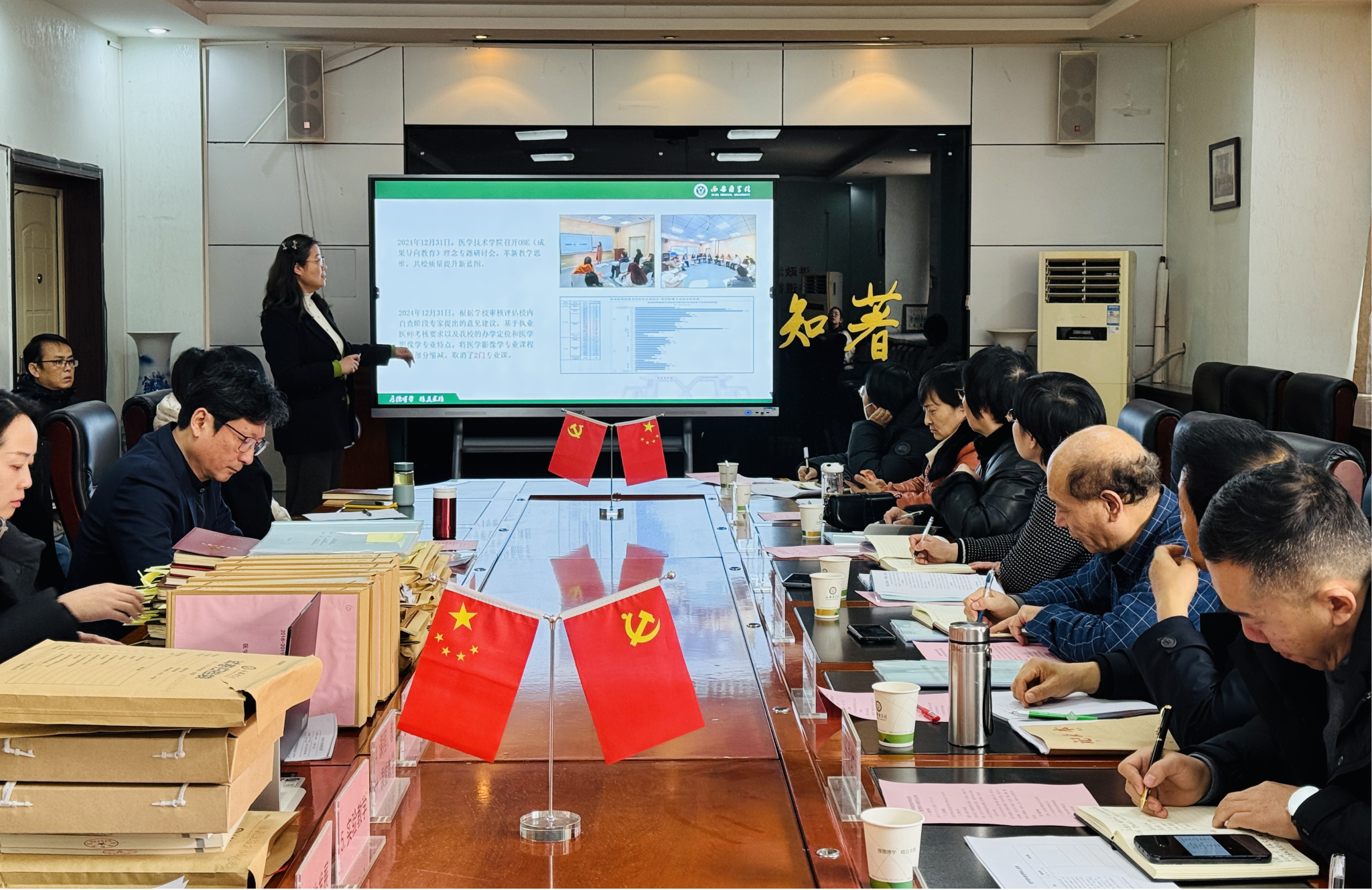 会议第二阶段,专家组分为四个小组对各项指标资料进行了详细查阅和指导交流。副院长王莉组织学院教师完成专家组对各项指标清单材料的详实检查。