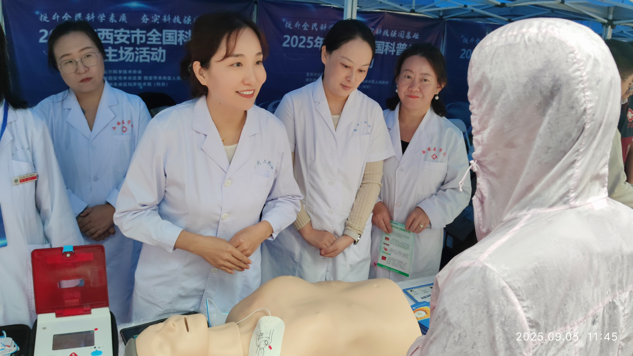 9月5日,陕西省暨西安市2025年全国科普日主场示范活动在四海唐人街盛大启幕。本次活动以“提升全民科学素质,助力科技自立自强”为主题,旨在通过丰富多彩的科普活动,向广大市民普及科学知识,传播科学思想,弘扬科学精神。西安医学院医学技术学院李妮教授作为西安医学会医学科普分会第五届副主任委员,依托陕西省社会科学界联合会科普项目,带领团队参与了此次活动。