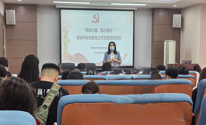 根据学校新时代党建“双创”工作精神,为充分发挥毕业生党员的先锋模范作用,进一步推动学院2024届毕业生就业工作,医学技术学院学生党支部于4月17日中午在学院报告厅举行“党员力量,助力就业”主题党日活动。学院党总支副书记徐景彩、学生党支部书记、毕业班辅导员及全体毕业生党员参加了此次活动。